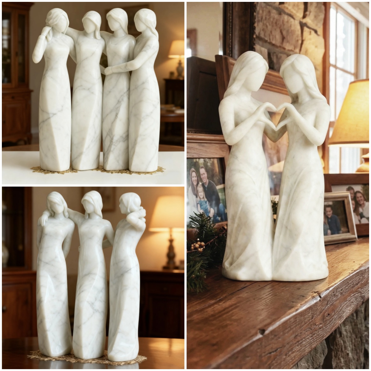 This hand-carved marble sculpture celebrates the quiet, unshakable love between women—sisters, best friends, mothers, daughters, or the family we choose along the way.