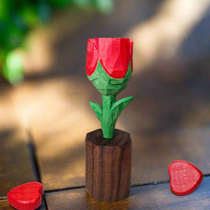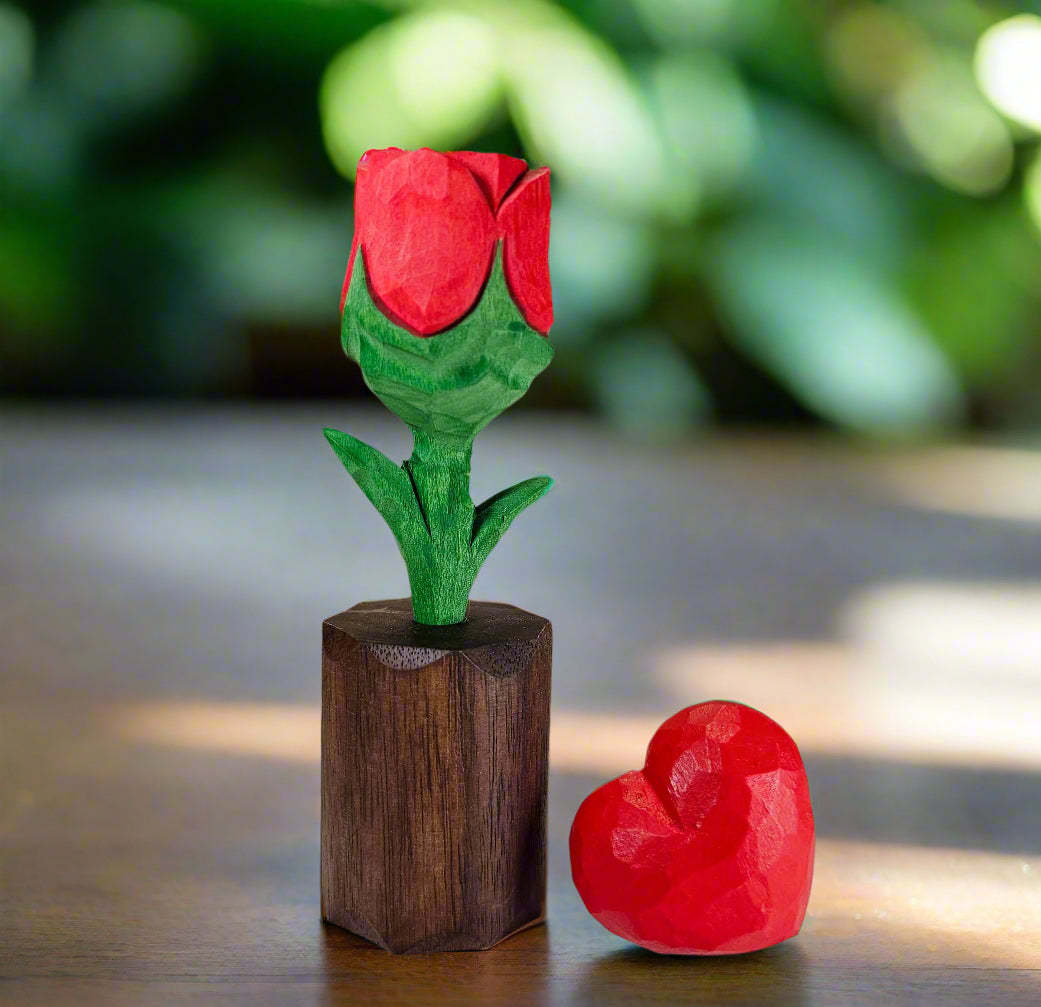 - Handcrafted wooden rose and heart décor