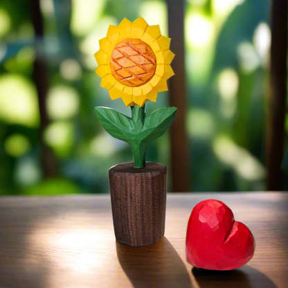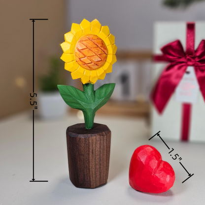 Each sunflower figurine is carefully crafted from high-quality wood. symbolizing happiness. warmth. and positivity. The red heart adds a personal touch. making it a meaningful keepsake for your loved ones.
